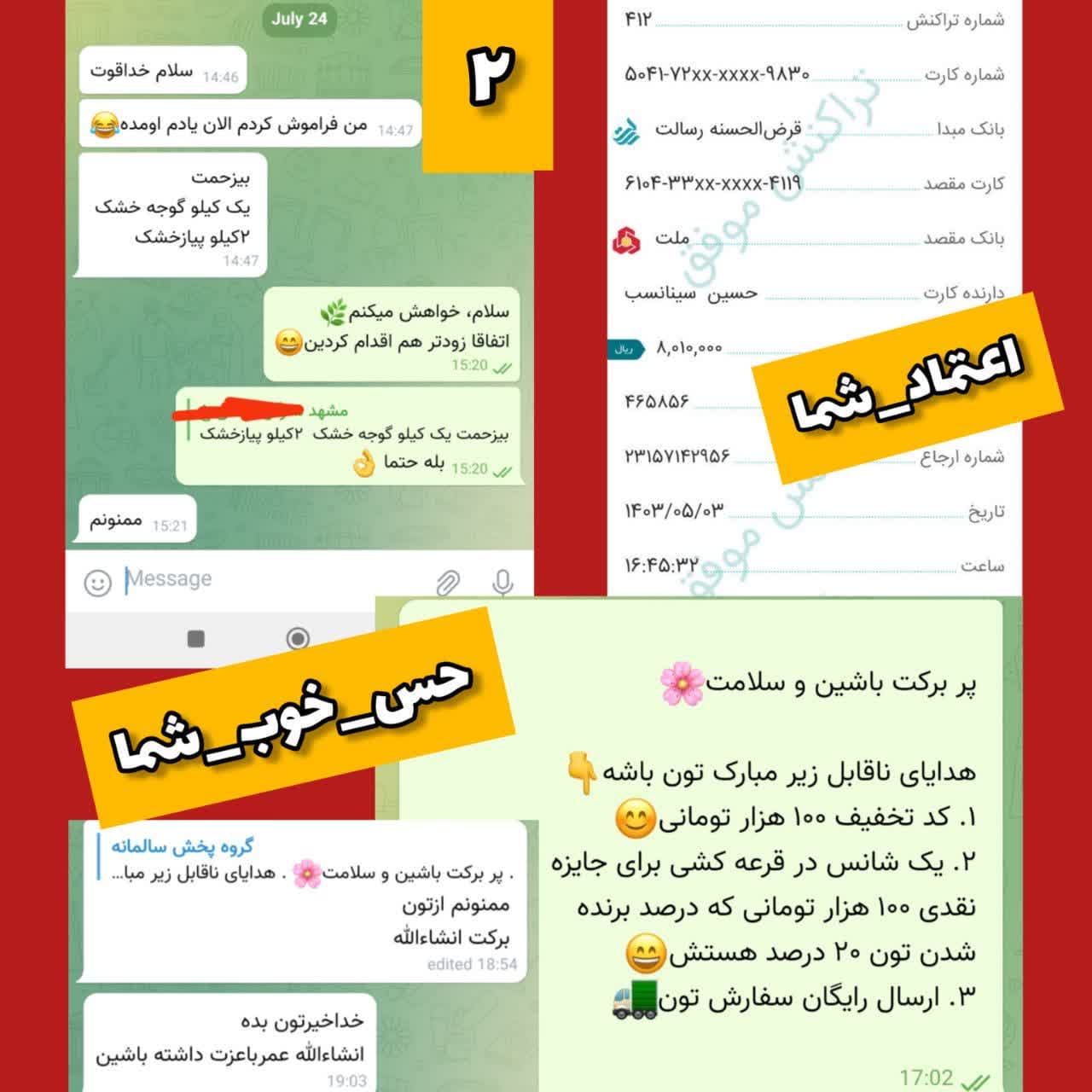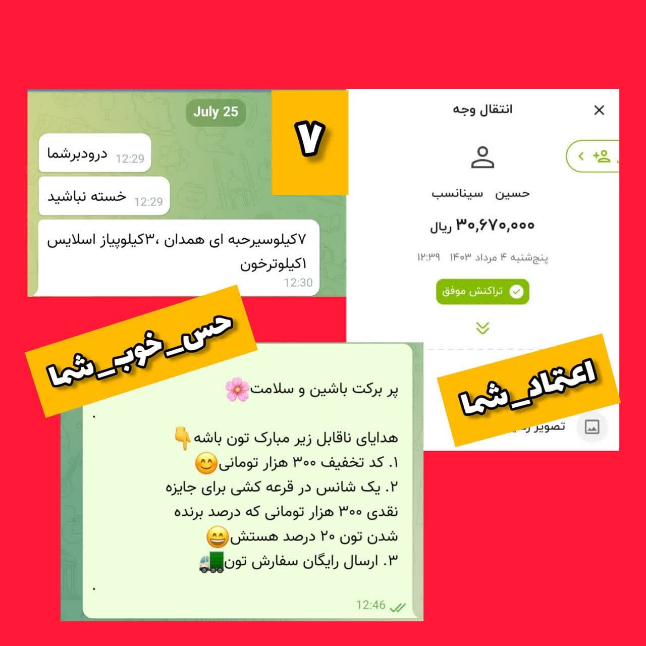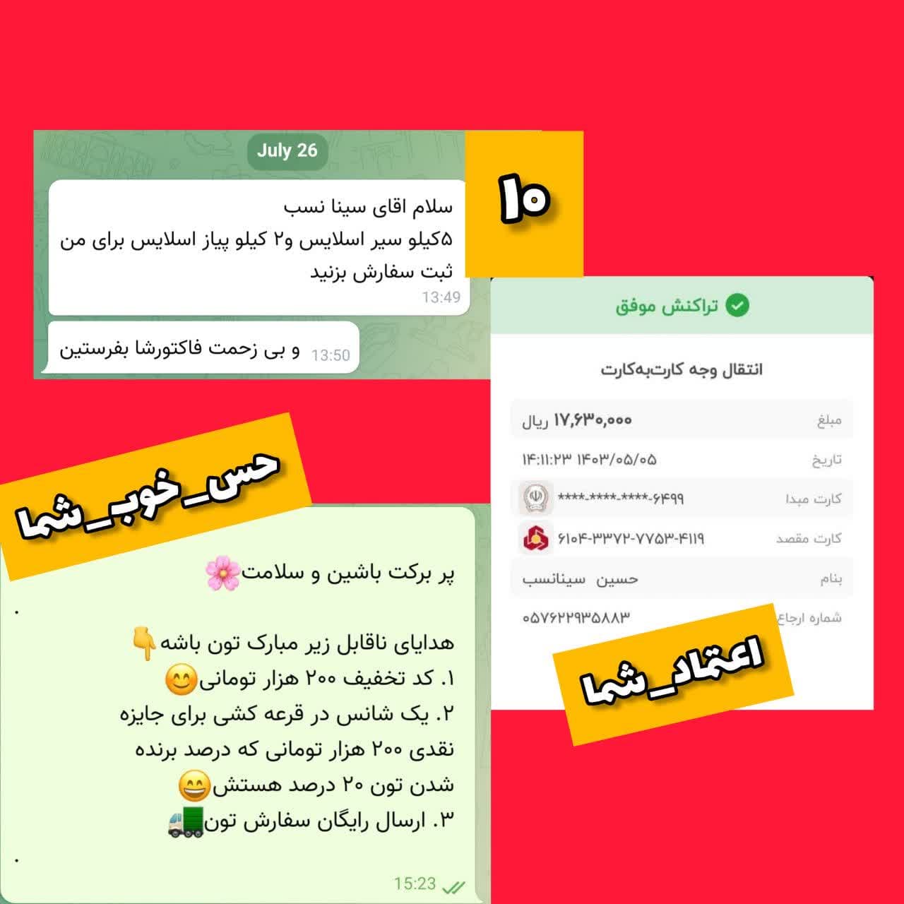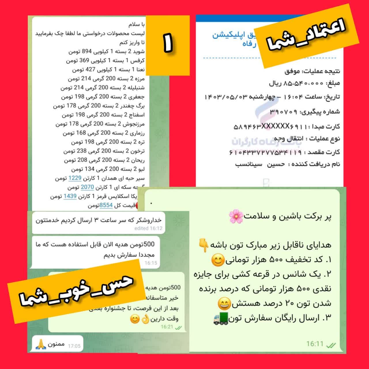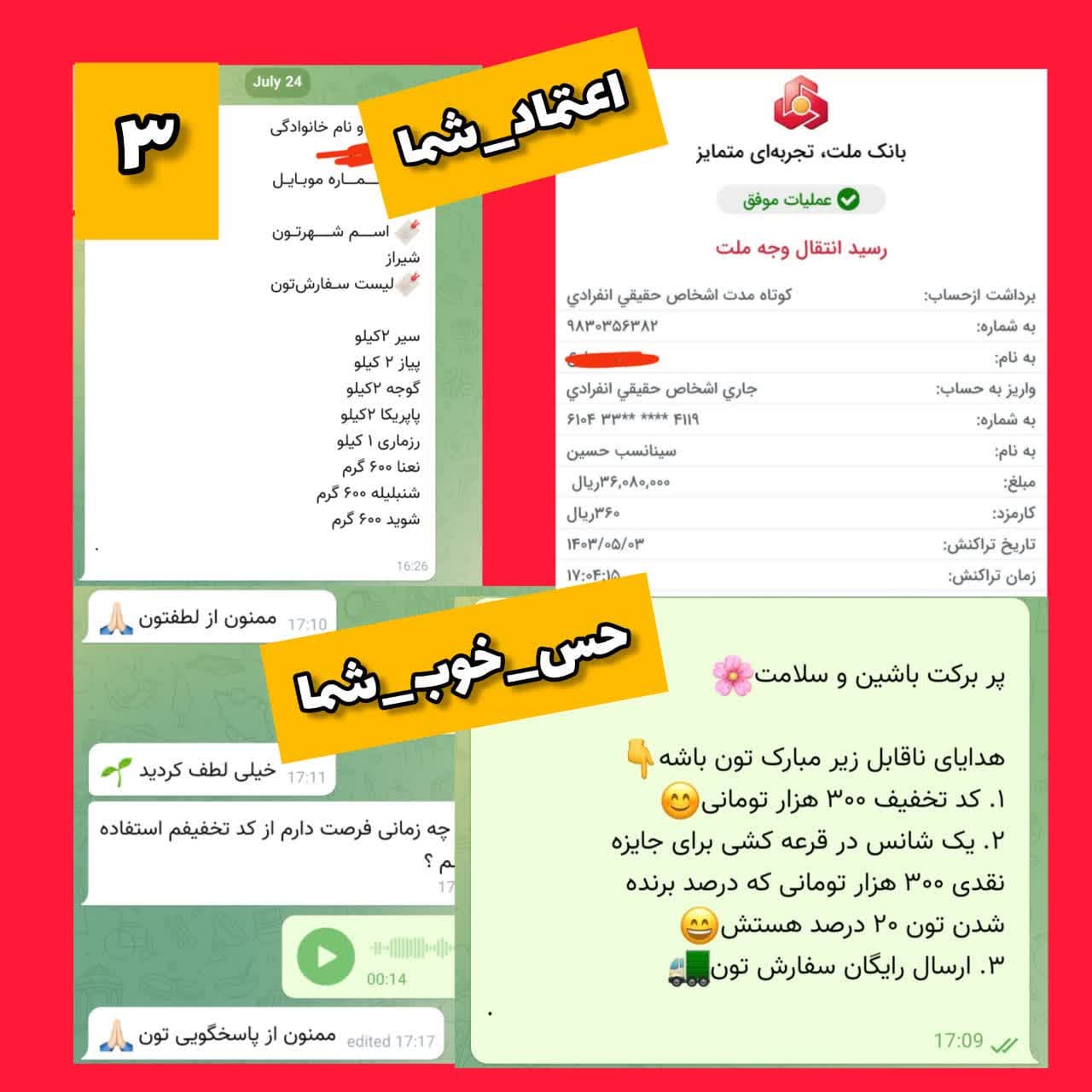 🥇برنده سوم: خرید اولی هستن از شـیراز، سـفارش بیش از ده کیلو برای بار اول 👏👏